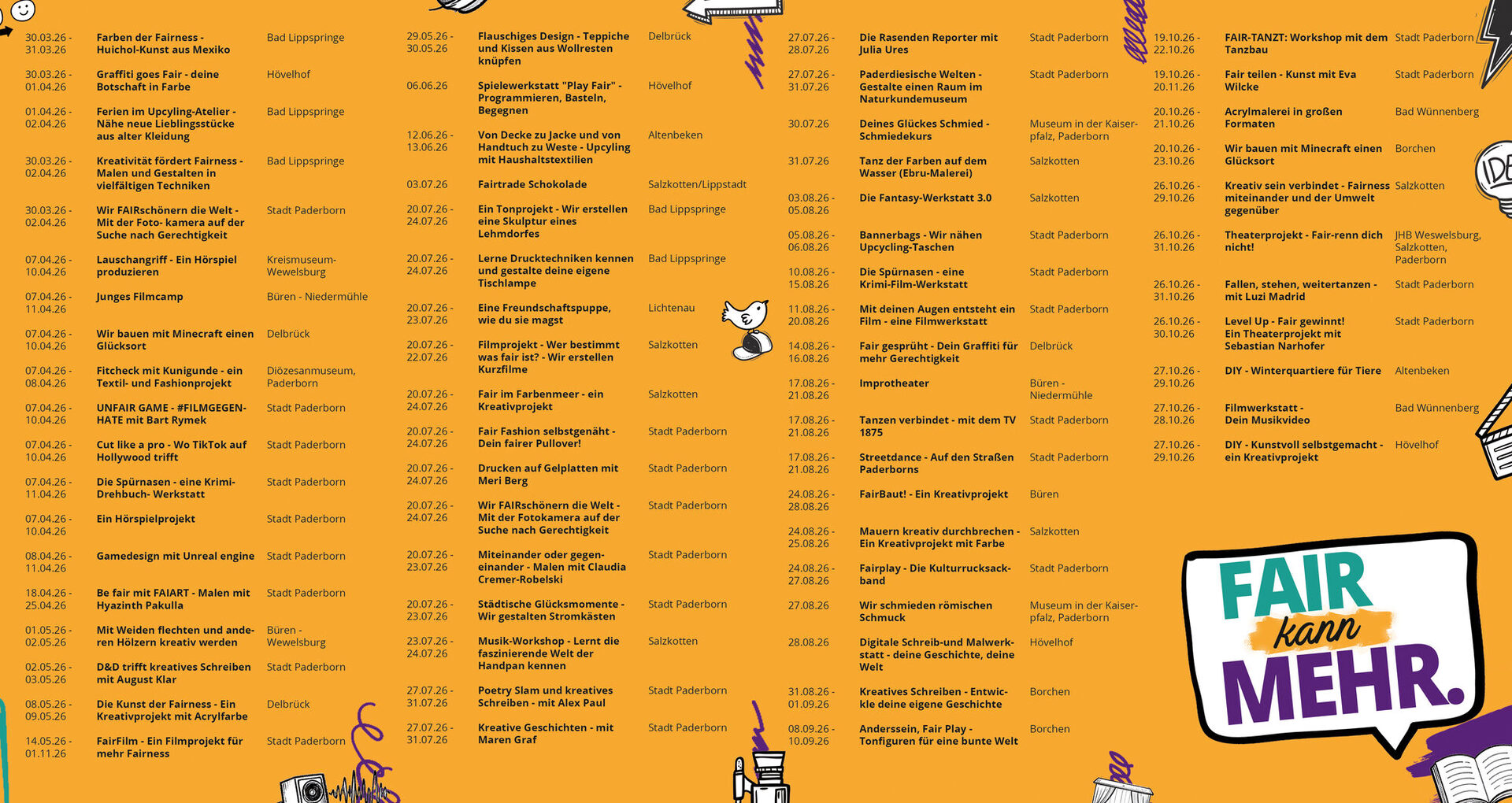 Sie befinden sich hier:StartseiteBildung UniversitätKulturelle BildungKulturrucksackKulturrucksackangebote Kulturrucksackangebote Besuch uns auf Facebook und InstagramInstagram Junge Kultur Paderborn (Öffnet in einem neuen Tab)Youtube Kulturrucksack Paderborn (Öffnet in einem neuen Tab)© Stadt PaderbornKulturrucksack Programm 2025Kunst ProjekteMedien ProjekteLiteratur ProjekteTanz ProjekteTheater ProjekteMusik ProjekteMuseum Sonstige Projekte