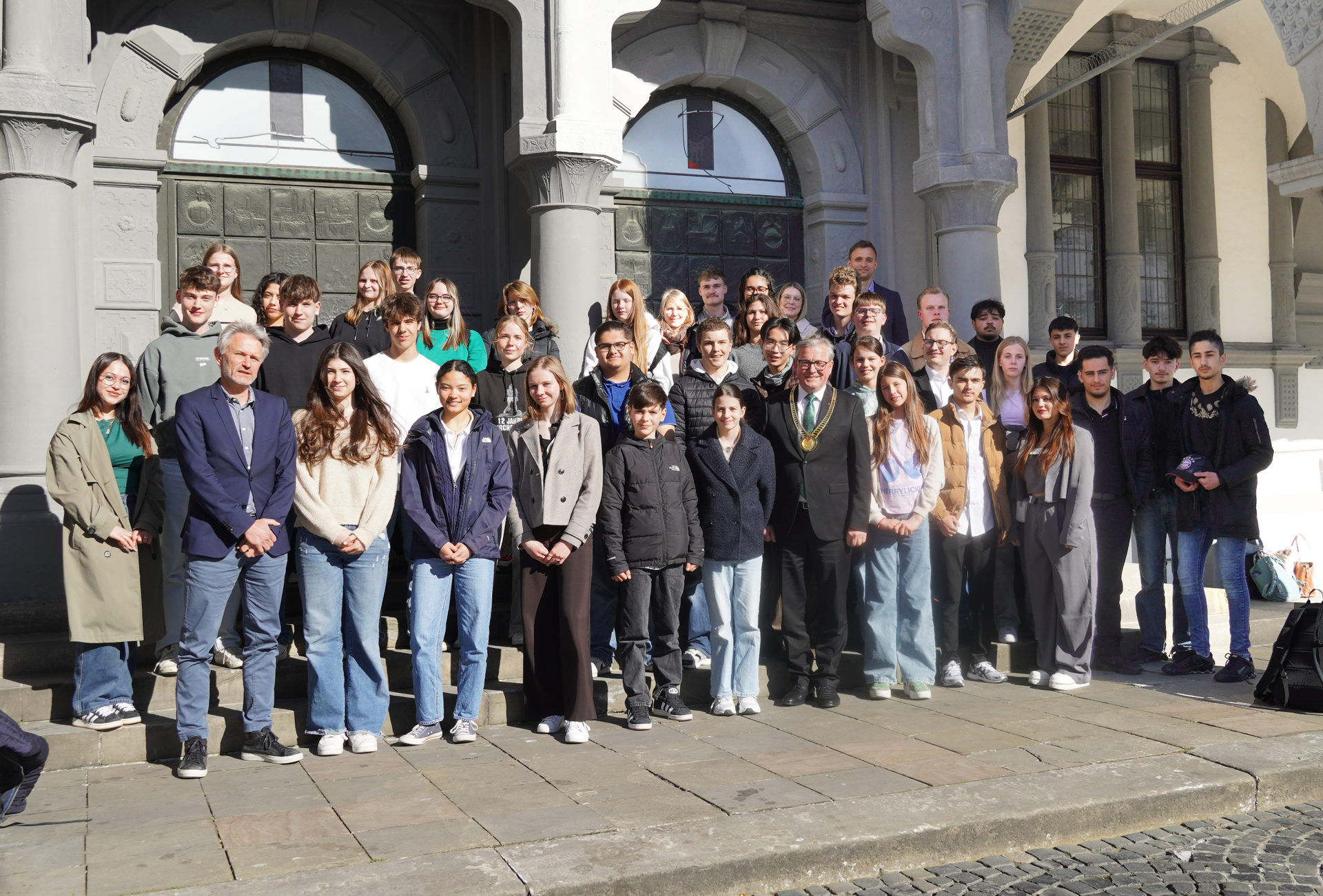 Im weiteren Gespräch mit Bürgermeister Dreier zeigten sich die Jugendlichen neugierig über dessen Arbeitsalltag. Dreier betonte dabei: „Es gibt kaum ein Thema in der Stadt, mit dem der Bürgermeister nichts zu tun hat. Ich möchte immer nah bei den Bürgerinnen und Bürgern sein, das ist mir ein Herzensanliegen.“