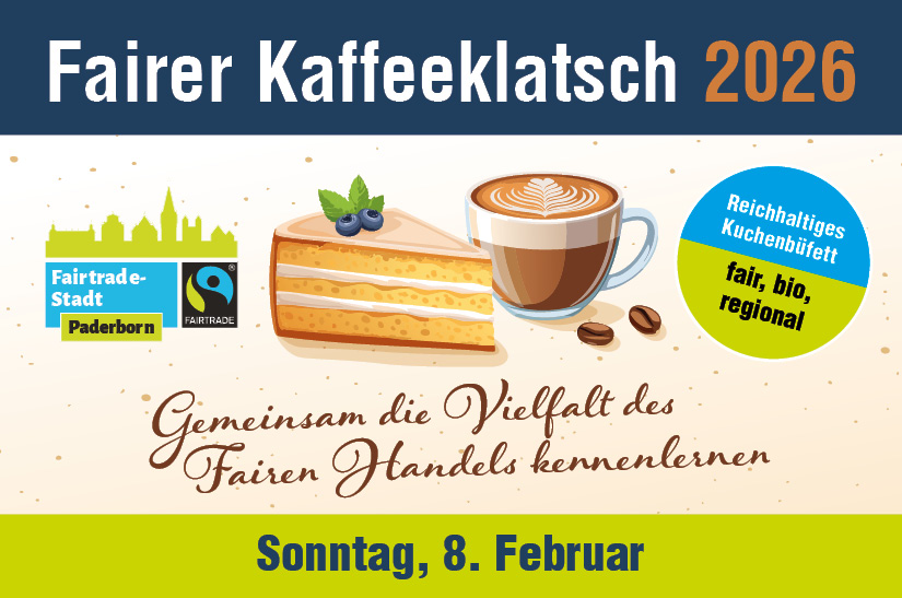 Freitag, 09. Januar 2026 | Stadt Paderborn - Am Sonntag, 8. Februar, lädt die Steuerungsgruppe Faires Paderborn ab 15 Uhr zu einem Fairen Kaffeeklatsch ins Historische Rathaus ein. Während die Steuerungsgruppe Faires Paderborn bereits seit 2013 zum Fairen Frühstück in den großen Saal des Historischen Rathauses einlädt, gibt es in diesem Jahr eine Neuerung: Die Gäste erwartet kein Frühstücksbüfett, sondern eine reichhaltige Auswahl an Kuchen, Muffins und anderen Gebäckspezialitäten, die die Vielfalt des Fairen Handels widerspiegeln. Neben den kulinarischen Highlights wird es auch wieder fachliche Inputs geben, die dieses Jahr aus der Steuerungsgruppe selbst kommen.