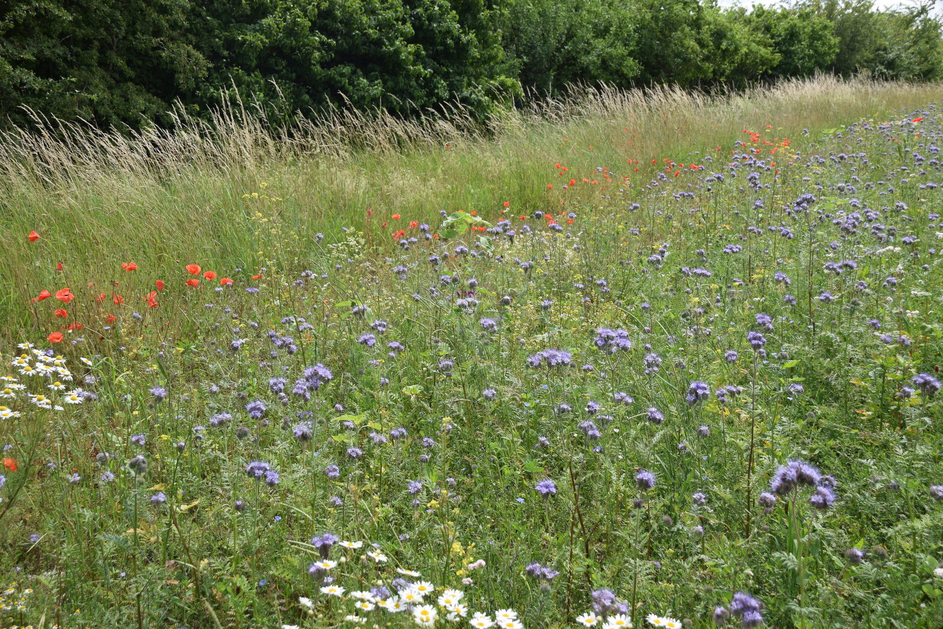 Nicht nur optisch sind die farbenfrohen Blühstreifen eine Augenweide, sondern besonders für Insekten ein wahres Buffet voller Leckereien. Wild- und Honigbienen, aber auch Hummeln und viele weitere Arten können hier aus dem Vollen schöpfen. Die Samen sind bei zahlreichen Vogelarten sehr beliebt. Bodenbrütende Arten und Wildtiere nutzen die Blühflächen gerne als Rückzugsgebiet. Viele Blühstreifen werden nach der Blütezeit nicht gemäht und bleiben über die Wintermonate stehen. Auch wenn die strohigen Stängel und verwelkten Blütenköpfe zurzeit einen eher ungepflegten Eindruck erwecken, so freuen sich Vögel und Insekten in den anstehenden Wintermonaten über stehengebliebene Blütenstängel und Samenkapseln, die sie als Brutstätte und Nahrungsquelle nutzen.