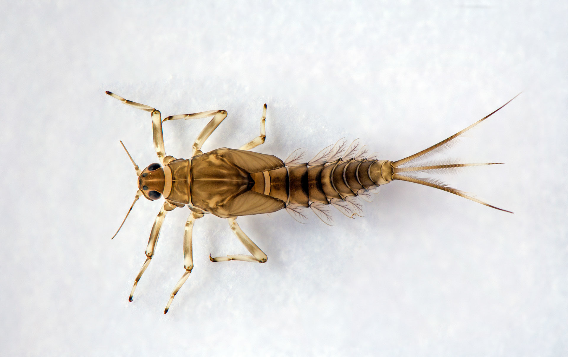 © Dr.Guenter BockwinkelUnblaublich feingliedrig: Larve der Eintagsfliege Baetis rhodani - eine verbreitete Art, die eine gute Wasserqualität anzeigt