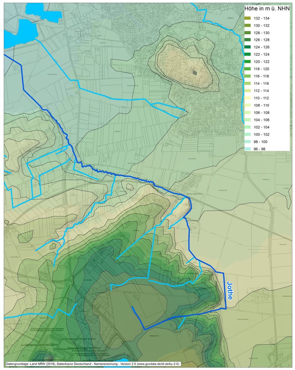 © NZO-GmbHIm Geländemodell gut zu sehen: Die Jothe entspringt, wie ihre weiteren Quellbäche, auf der Hochfläche.