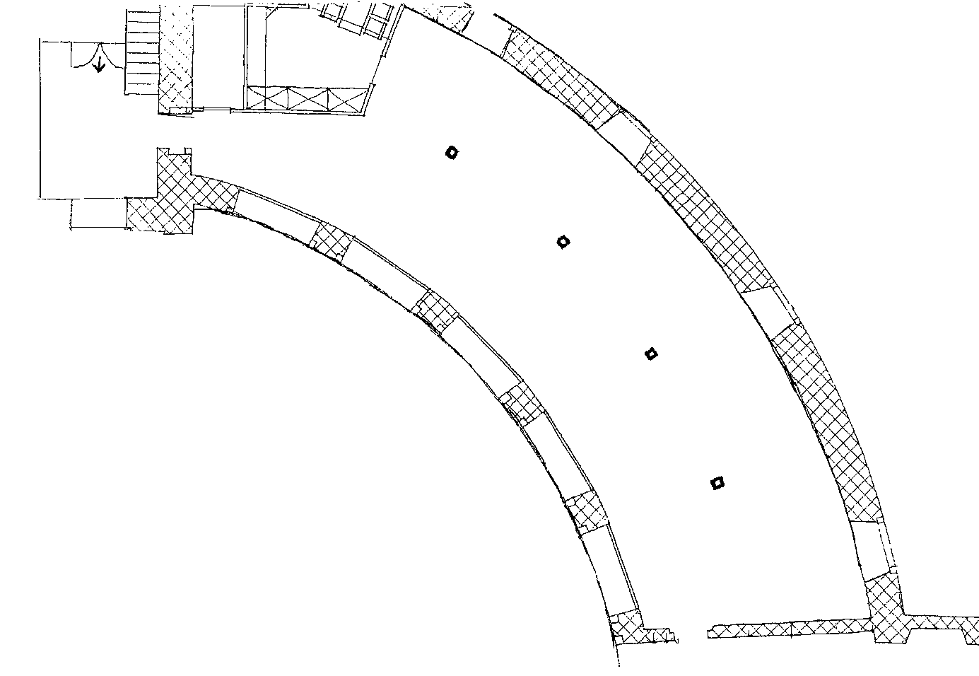 Im Paderborner Naturkundemuseum beschreibt der Sonderausstellungsraum, wie in der Abbildung zu erkennen ist, einen Bogen. Der Raum ist, bevor hier eine Ausstellung aufgebaut wird, völlig leer. Es sind keine Vitrinen oder andere Einrichtungsgegenstände fest verbaut, nur das Licht ist vorinstalliert und die Türen sind natürlich an ihrem festen Platz; ansonsten kann die Ausstellung räumlich komplett frei gestaltet werden. Das bedeutet Freiheit und Aufwand zugleich, denn einerseits kann jede Ausstellung somit individuell geplant werden, andererseits wird vor beziehungsweise nach jeder Sonderausstellung bei „Null“ angefangen. Der Grundriss des  Sonderausstellungsraums (Abb. 5) ist bei der Planung entscheidend. Er hilft dabei, verschiedene Optionen der Ausstellungsrealisierung ‚durchzuspielen‘, indem er z.B. beschriftet oder mit kleinen Zeichnungen versehen wird. Angefangen in einem kleinen Vorraum, der den Übergang zwischen Dauer- und Sonderausstellungsraum darstellt, geht es, wie die Abbildung zeigt, schließlich durch eine Tür in den bogenförmigen Hauptraum der Sonderausstellung. Und hier ist bei der Konzeption grundsätzlich (fast) alles erlaubt: Die Fläche kann – mit Ausnahme der Notausgänge – vollständig genutzt und alle Wände beliebig ‚bespielt‘ werden. Ebenso möglich ist es, auf verschiedene Weise mit Licht zu arbeiten, etwa indirekt oder sehr direkt in Form eines ‚Spotlights‘. Aber auch Flächen wie der Vorraum sollten nicht nur als Durchgangsbereich gesehen werden, sondern lassen sich – je nach Thema der Ausstellung – eventuell gut und sinnvoll integrieren. Denkbar ist hier zum Beispiel eine inhaltliche Einführung durch einen Informationstext, einen Kurzfilm oder dergleichen, begleitet durch erste Objekte, die ‚Lust auf mehr‘ machen.