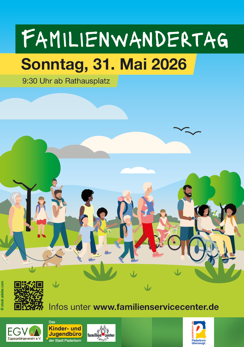 Bewegung, Natur und gemeinsames Erleben stehen im Mittelpunkt, wenn am Sonntag, den 31. Mai 2026, der 16. Familienwandertag in Paderborn stattfindet. Organisiert wird die beliebte Veranstaltung durch das Kinder- und Jugendbüro und das FamilienServiceCenter des Jugendamtes der Stadt Paderborn in Kooperation mit dem Eggegebirgsverein Paderborn.