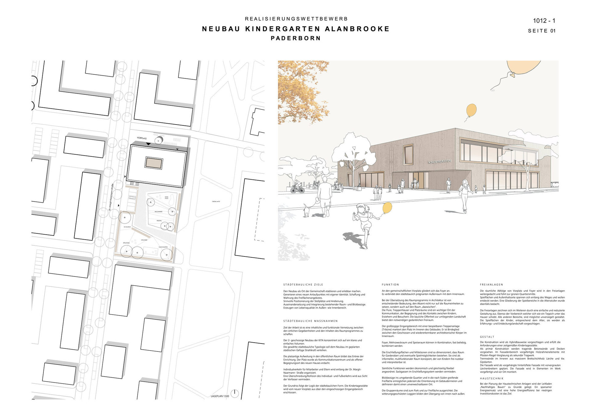 Am 09.12.2020 fand der Realisierungswettbewerb für die Kita Alanbrooke statt. Das Preisgericht hat nach Bewertung der Arbeiten wie folgt entschieden: