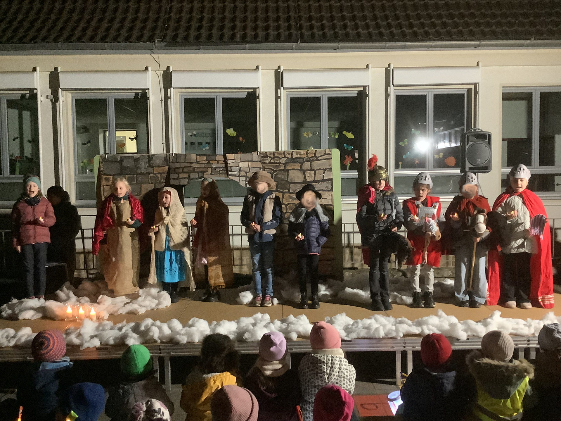 Die Kinder der TiRaffenklasse hatten unter der Leitung von Frau Heggemann ein Martinsstück einstudiert und führten dieses engagiert vor.