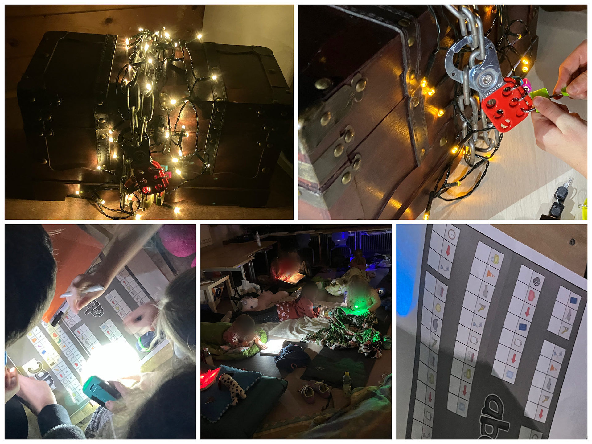 Anschließend wartete ein echtes Abenteuer: Ein Escape Room mit sechs kniffligen Rätseln forderte die TiRaffen heraus. Mithilfe der richtigen Lösungen ließen sich nach und nach alle Schlösser öffnen. Die Spannung stieg, bis schließlich die versteckte Schatztruhe im Teamzimmer entdeckt wurde. Die Freude war groß, als sich darin für jedes Kind zwei kleine Stücke Schokolade und eine praktische Fingertaschenlampe fanden.
