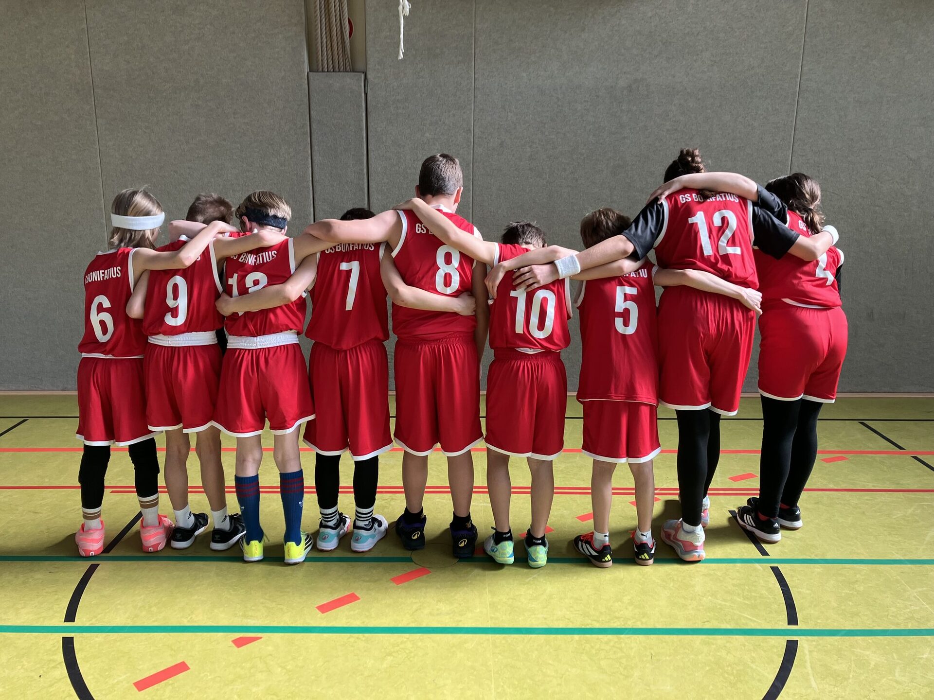 Unser erstes Spiel war gegen die Liboriusschule. Am Anfang war es noch ziemlich spannend, weil beide Teams viele Chancen hatten. Aber wir haben gut zusammen gespielt, uns die Bälle zugespielt und immer wieder versucht, zum Korb zu ziehen. Am Ende konnten wir das Spiel mit 13:8 gewinnen und waren alle richtig froh über den gelungenen Start.