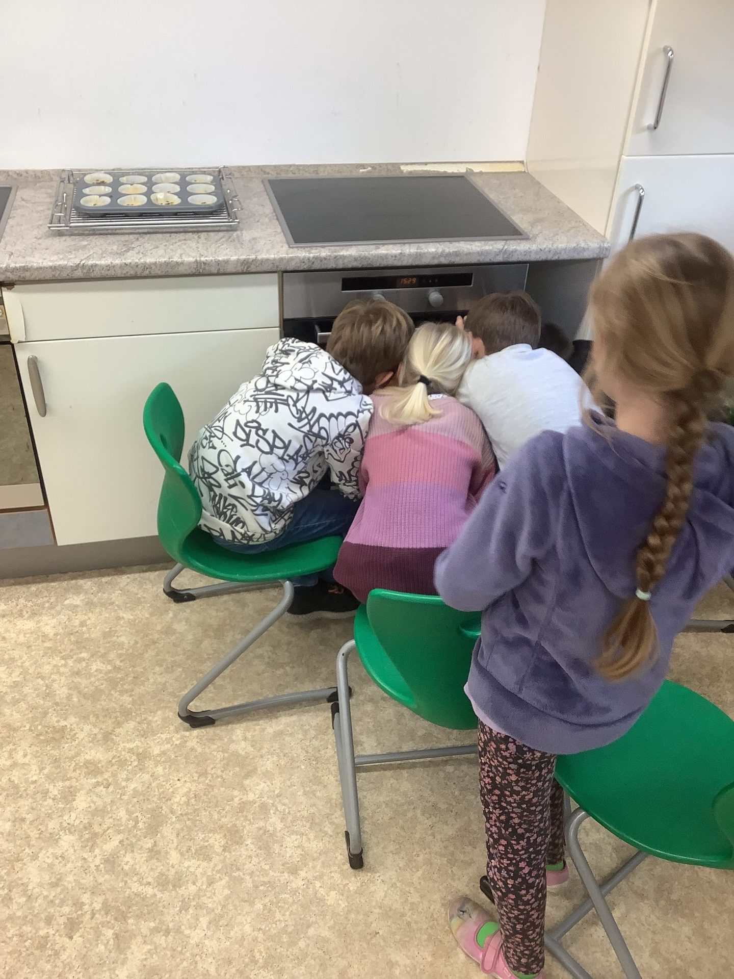Der Duft der frisch gebackenen Muffins erfüllte schließlich den Raum und belohnte alle für ihre Mühe. Natürlich durfte auch das gemeinsame Probieren nicht fehlen. Die Aktion machte allen großen Spaß und war ein gelungener, leckerer Abschluss des Themas.
