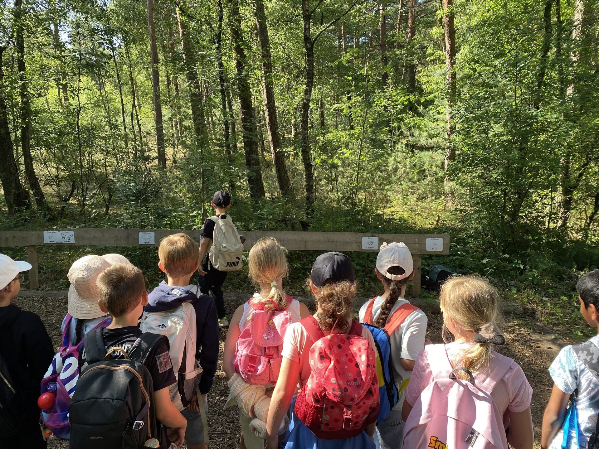 Unser Ziel war der große Spielplatz an den Emsquellen. Dort gab es alles, was man sich wünschen kann: Wasserspielplatz, Schaukeln, eine Seilbahn und viele schattige Plätze zum Ausruhen. Leider hatte der 4. Jahrgang eine andere Route und konnte nicht mehr zum Spielplatz kommen – das war ein bisschen schade.