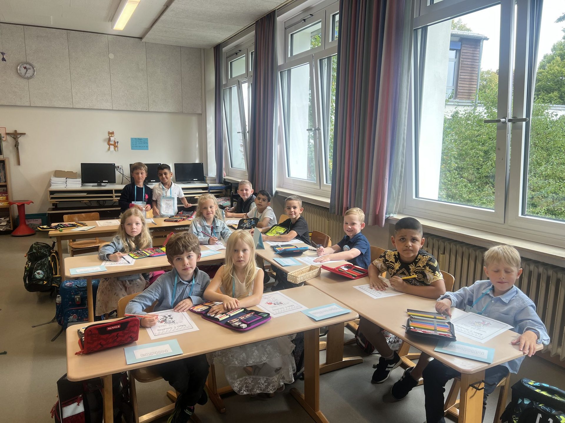 Hier seht ihr uns in unserer Klasse an unserem ersten Schultag.