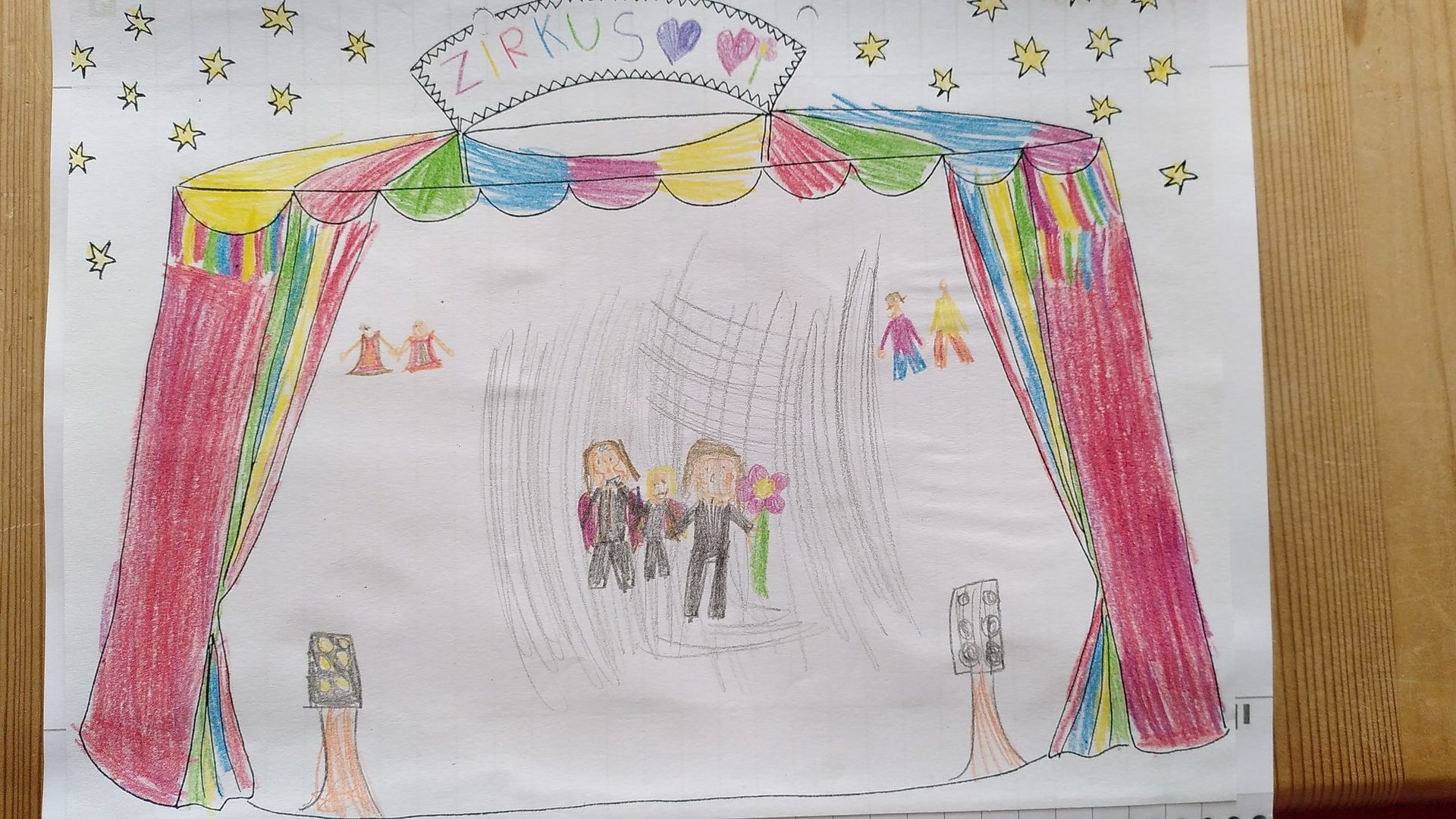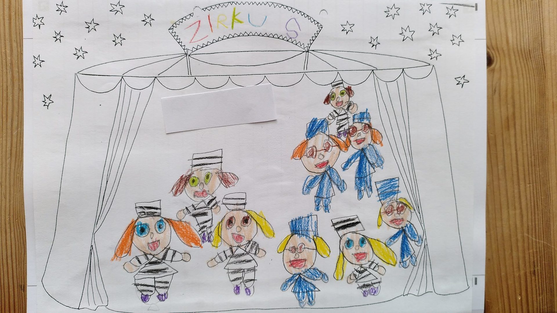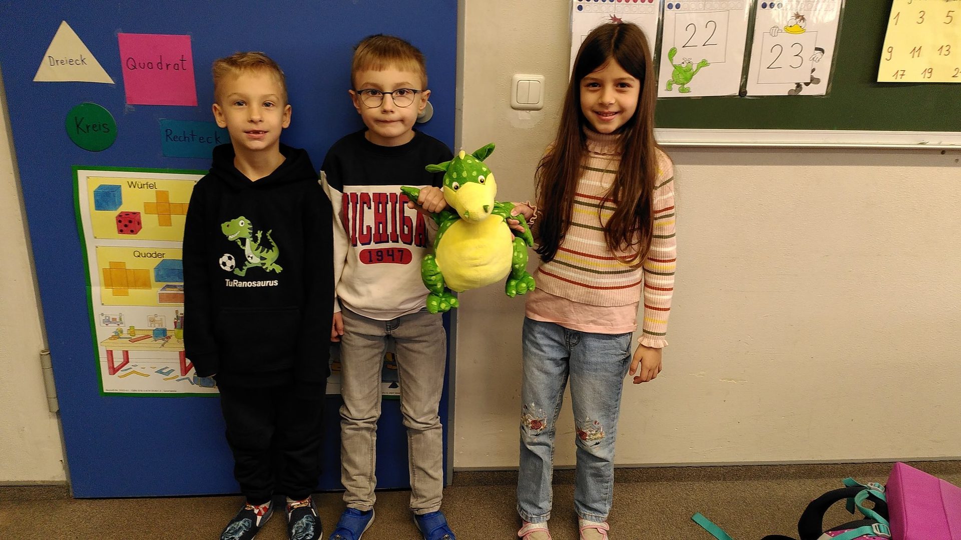 In unserer Klasse sind 23 Kinder . Hier seht ihr unsere Klassensprecher mit Niko, unserem Klassentier. Wir haben in der Schule schon viele tolle Sachen erlebt. Besonders war die Projektwoche mit dem Zirkus Phantasialand. Wir waren Schwarzlichtkinder, Akrobaten und Zauberer. So sahen wir aus .