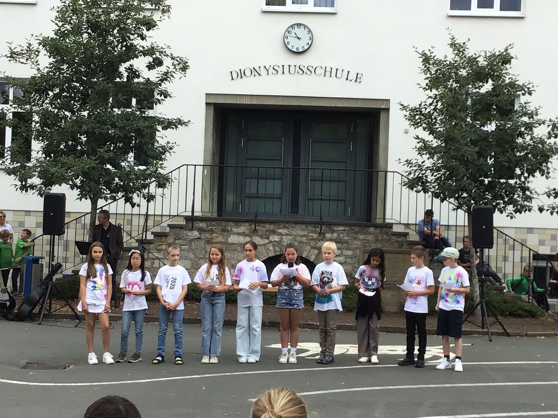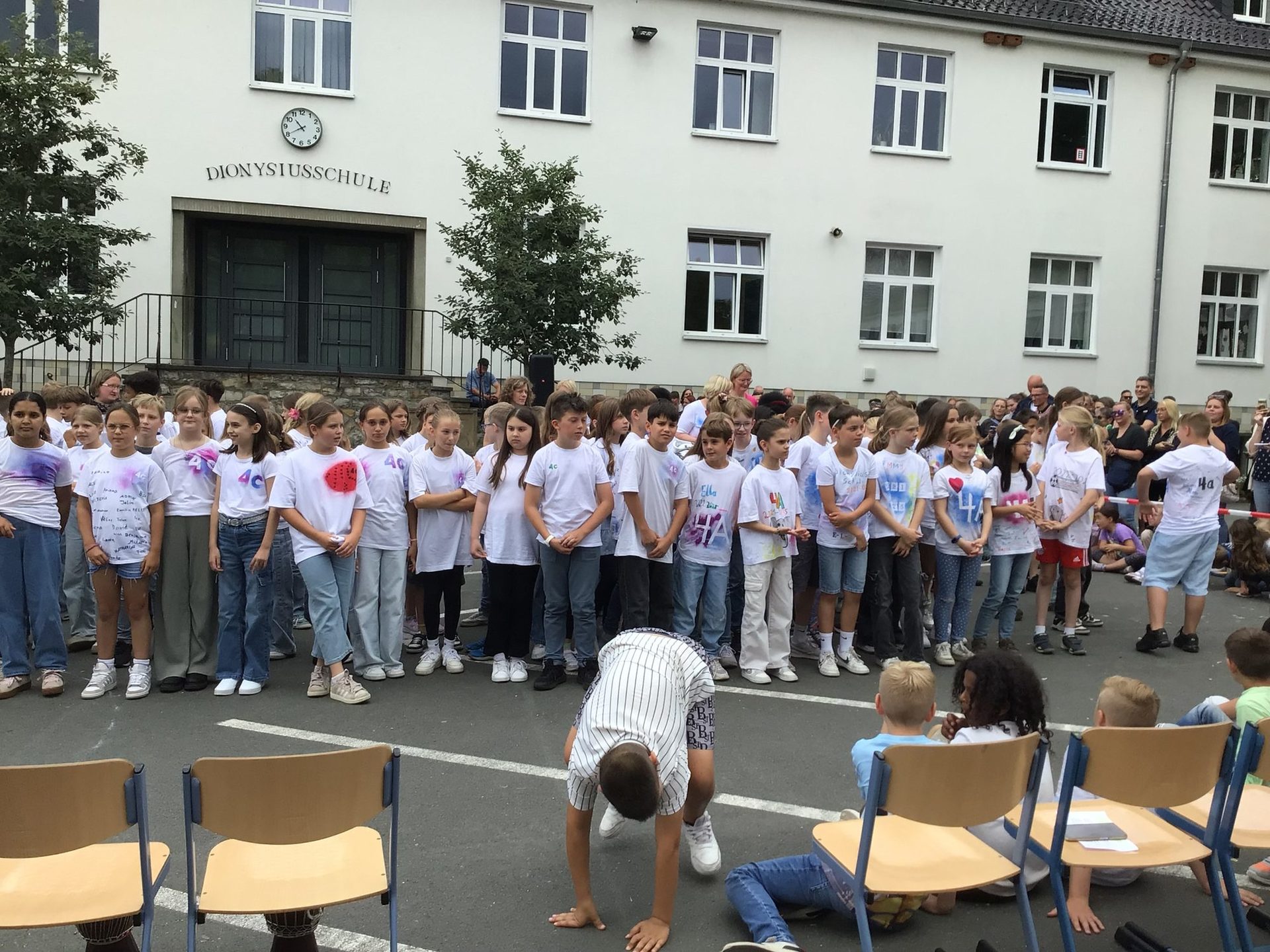 Am letzten Schultag des Schuljahres werden an der Dionysiusschule traditionell die Viertklässler mit einer großen Feier auf dem Schulhof verabschiedet. Das war auch dieses Jahr so…