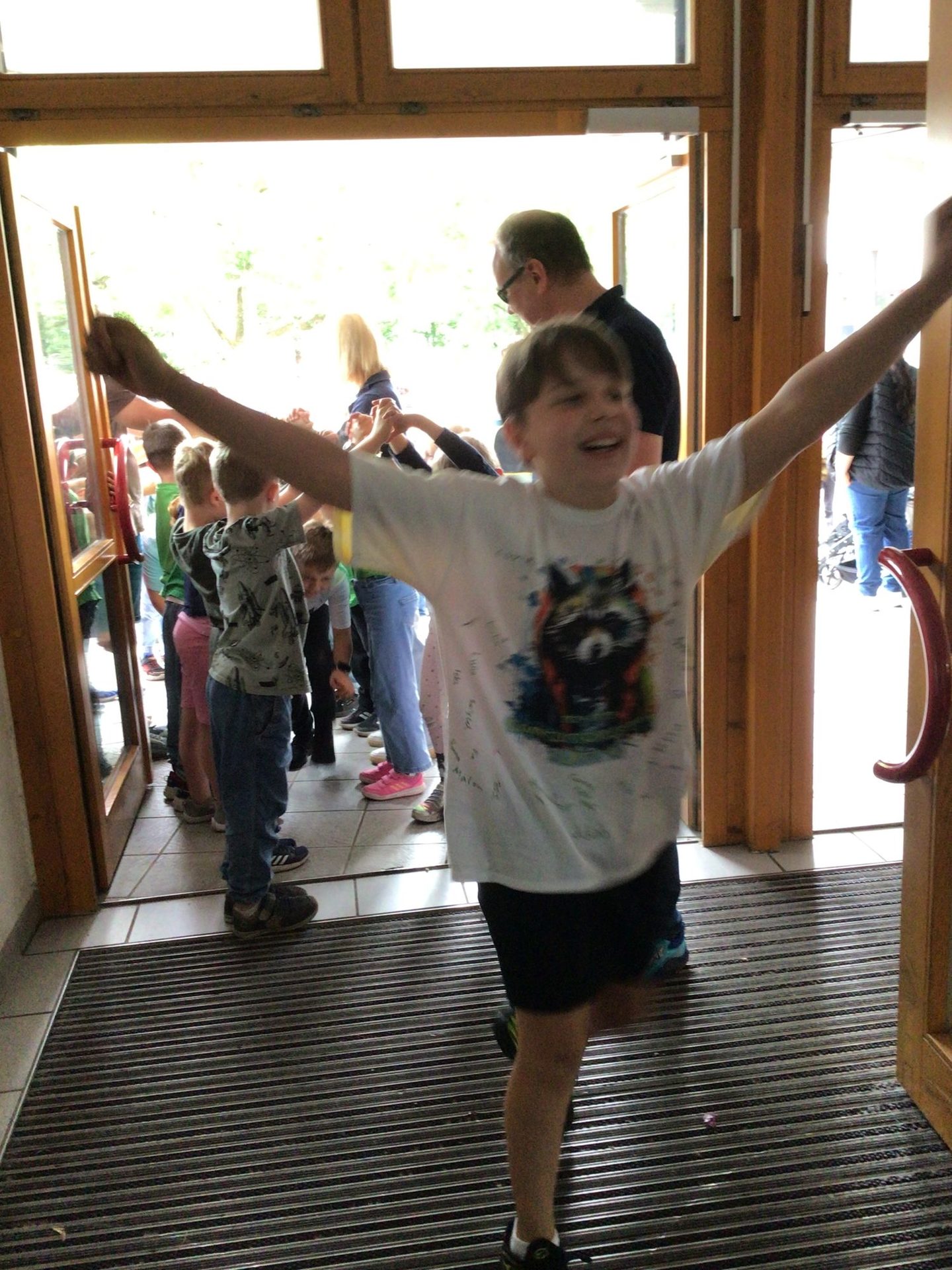 Zum Abschied durften sie dann durch ein Spalier das letzte Mal in ihre Schule gehen.