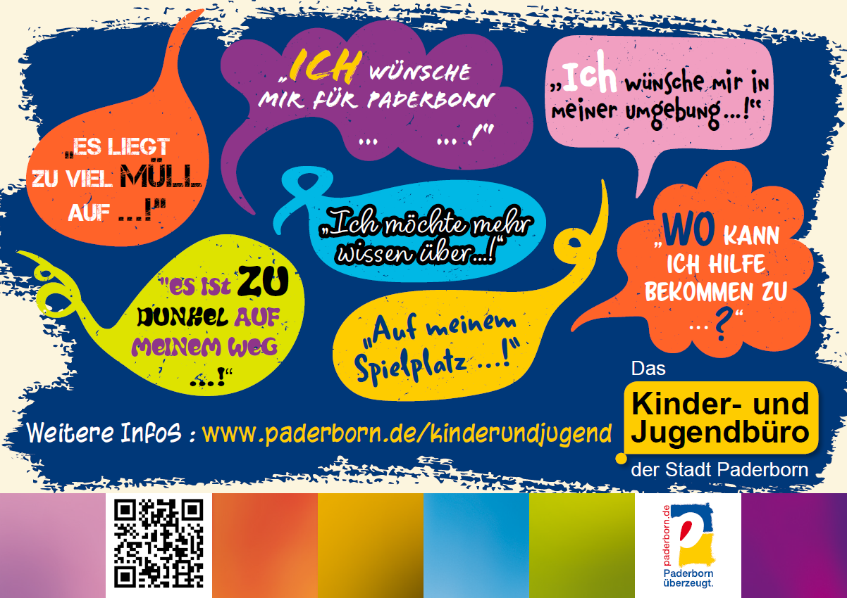 Kinder und Jugendliche aus Paderborn können sich mit ihren Anliegen und Bedarfen rund um die Stadt Paderborn an das Kinder- und Jugendbüro wenden.