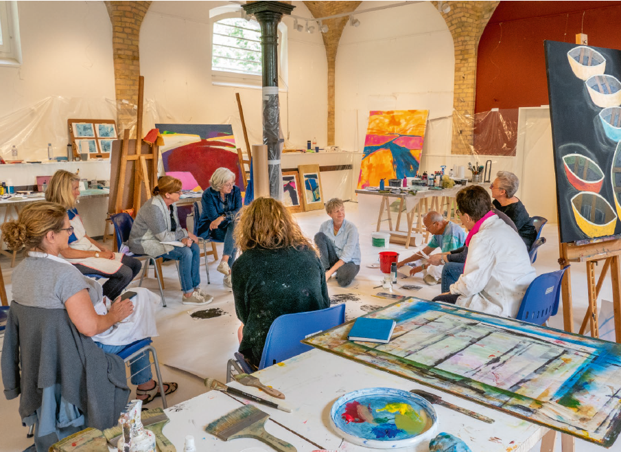 Das Eintauchen in die Malerei wird als Prozess verstanden, bei dem die Teilnehmenden über das Experimentieren, Ausprobieren und Skizzieren eigene Arbeiten entwickeln. Basis hierbei ist das Verständnis von Malerei als Geste und Handlung, bei der Gedanken, Gefühle, Träume und Befindlichkeiten von Bedeutung sind.