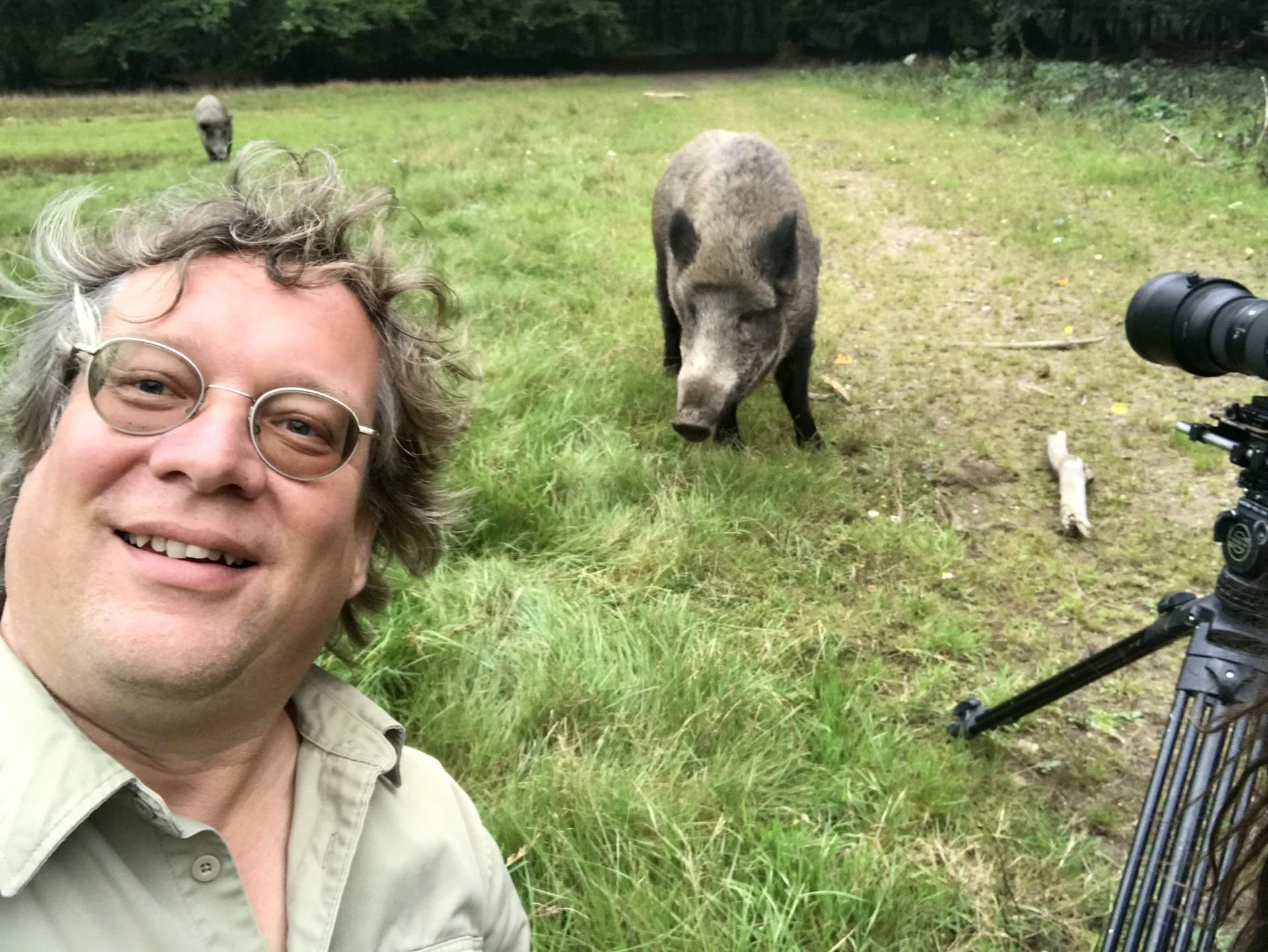 © Robin JähneBesuch am Set: Robin Jähne begegnete bei seinen Dreharbeiten zum Sturm auch Wildschweinen - sie gehen wie er gern raus, wenn es stürmt und regnet.