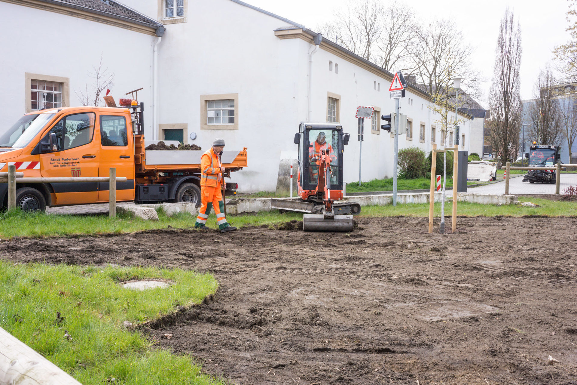 Dr. Sven Mecke und Dagmar Gorny vom Naturkundemuseum lassen eine wilde Wiese für Schmetterlinge anlegen, Totholz aufschichten und Insektenquartiere aufstellen. Sie engagieren sich damit für den Naturschutz und werden die umgestaltete Fläche am Museum für die Kulturlandschaftsvermittlung nutzen. Angelegt und bearbeitet wird die Wiese vom Amt für Umweltschutz und Grünflächen. Das regionale Saatgut wurde von der Naturschutz-Stiftung Senne und dem Kreis Paderborn zur Verfügung gestellt.