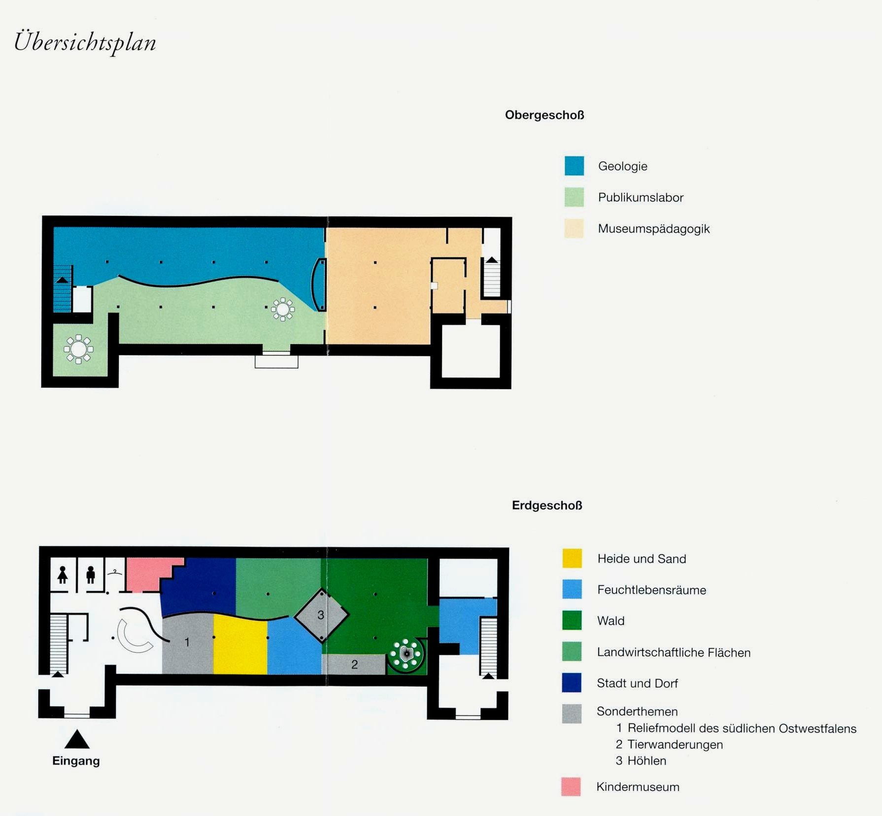 Beim Hinaufsteigen in das Obergeschoß unternimmt man symbolisch eine Reise durch die Erdzeitalter, bevor man die geologische Abteilung betritt. Hier werden vor allem Gesteine und Fossilien aus der Kreidezeit und der Saale-Eiszeit gezeigt, denn diese Erdzeitalter haben die ostwestfälische Region vornehmlich geprägt.