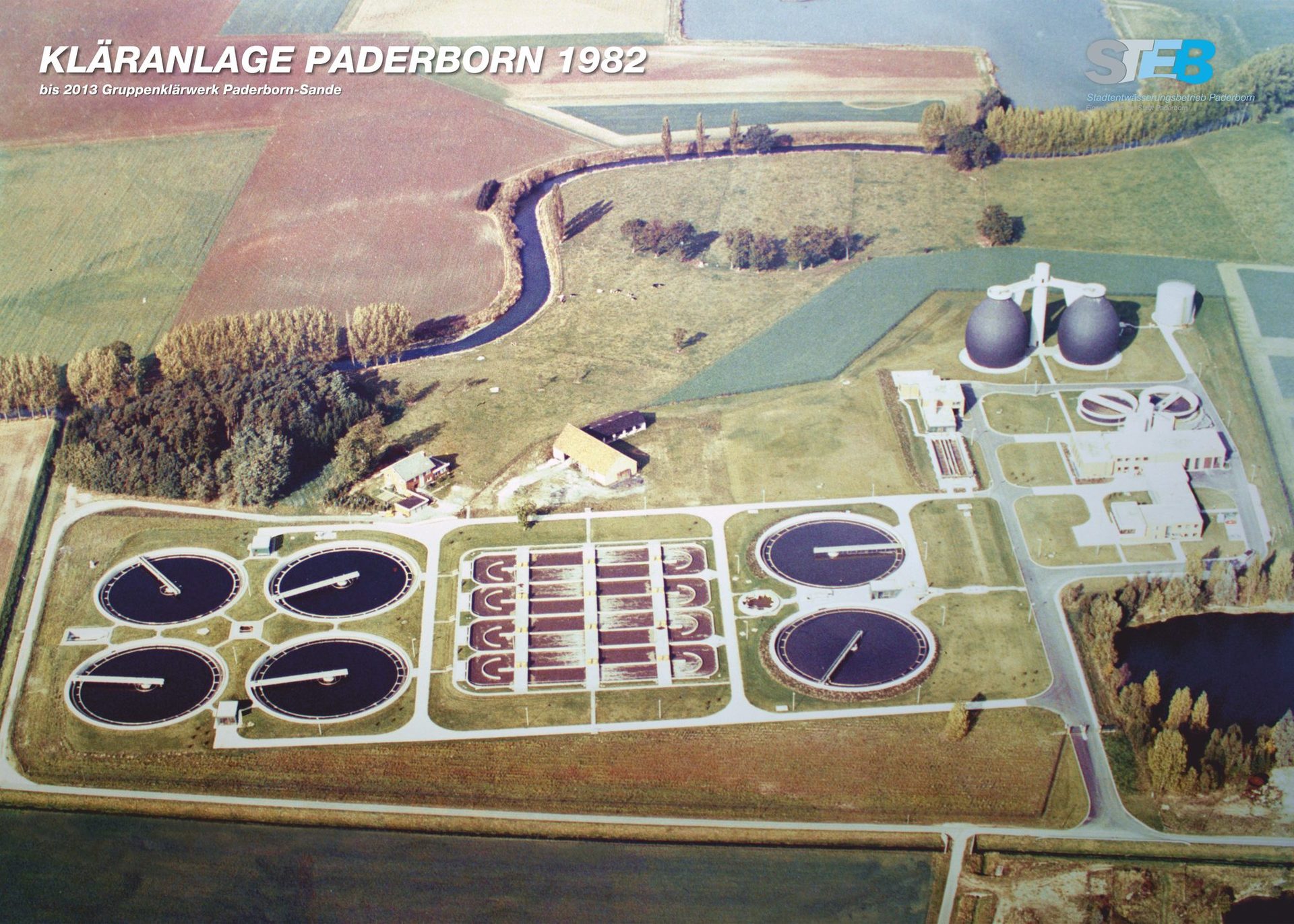 Das nachfolgende Luftbild zeigt den Zustand der Kläranlage Paderborn im Jahr 1982, bis 2013 Gruppenklärwerk Paderborn-Sande.