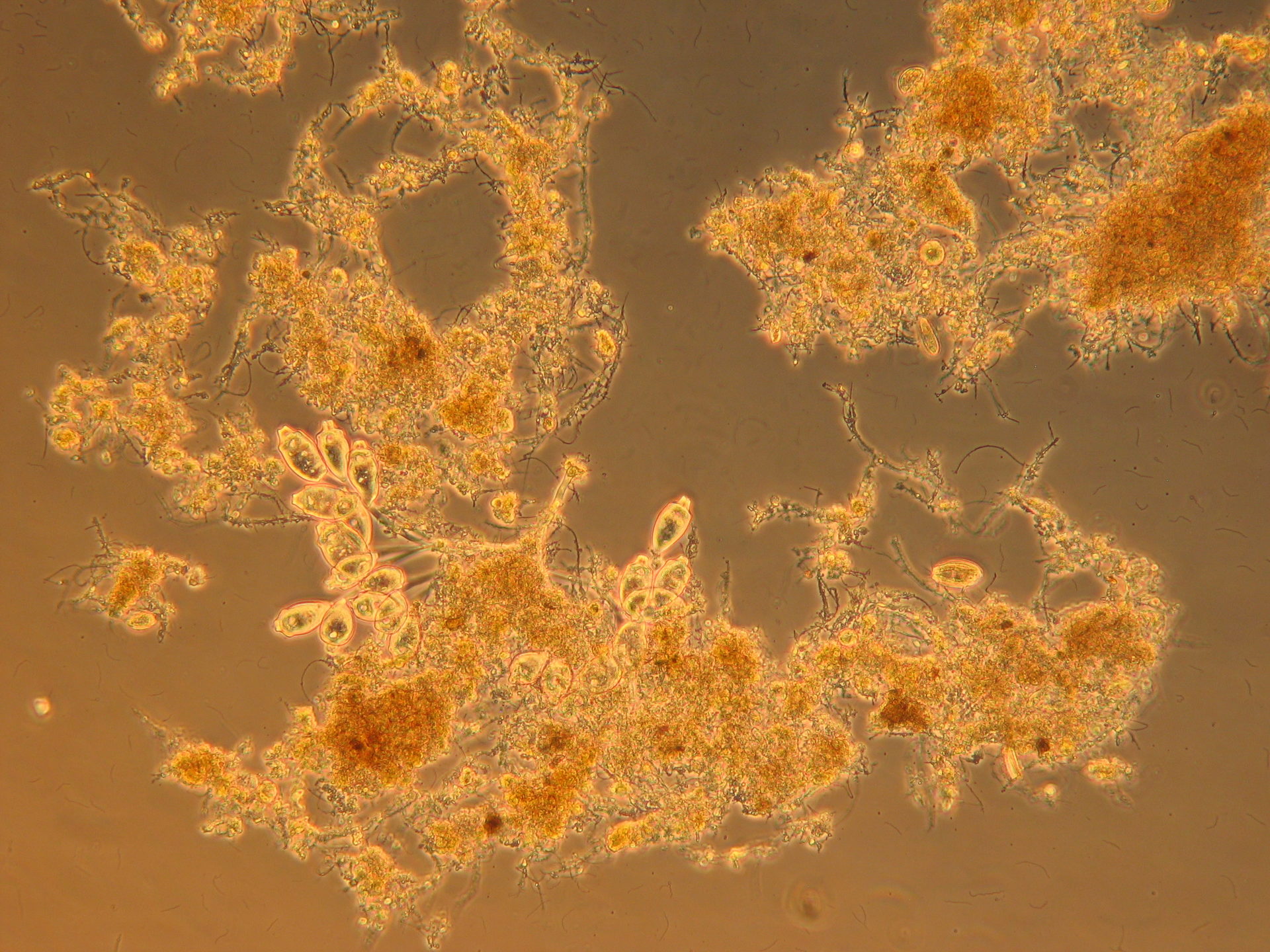 © Stadtentwässerungsbetrieb Paderborn (STEB)Belebtschlammflocke mit Glockentierchen und Fadenbakterien (Vergrößerung 1:100)
