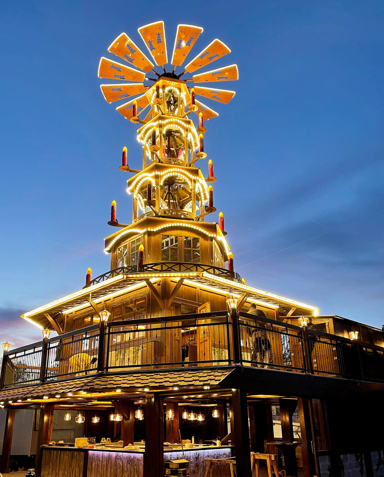 Ein besonderes Highlight des Weihnachtsmarktes wird auch in diesem Jahr die etwa 20 Meter hohe Paderborner Weihnachtspyramide auf dem Marktplatz sein. Mit insgesamt sechs Ebenen ist sie eine der größten begehbaren Weihnachtspyramiden. Die im westfälischen Fachwerkstil aus Echtholz gefertigte Pyramide lädt auf den unteren beiden begehbaren Ebenen die Besucherinnen und Besucher ein. Auf den vier darüber befindlichen, drehbaren Ebenen kreisen handgeschnitzte Weihnachtsfiguren. Den Höhepunkt bildet die Kupferspitze mit überdimensionalen, beleuchteten und beweglichen Flügeln.