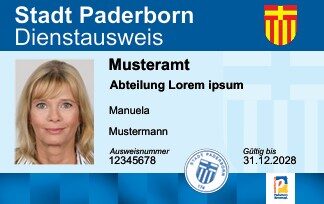 Die Mitarbeitenden der Stadtverwaltung Paderborn sind für die Wahrnehmung ihrer dienstlichen Tätigkeiten mit einem Dienstausweis im Scheckkartenformat ausgestattet worden. Dieser Ausweis löst die bisherigen Dienstausweise in Papierform nun nach und nach ab.