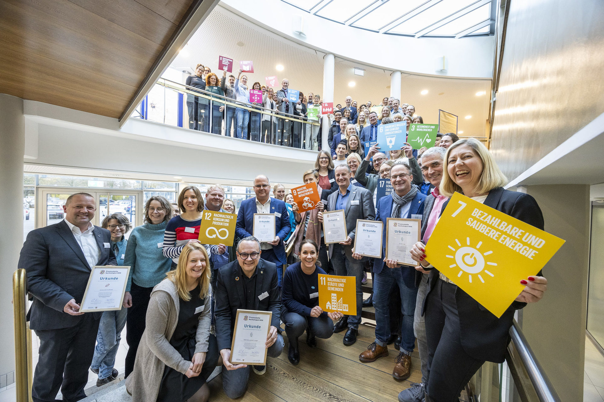 Gemeinsam mit den anderen 17 teilnehmenden Kommunen der ersten Projektlaufzeit durfte Paderborn dann Ende November in Dortmund die Urkunde für die Erstellung der Nachhaltigkeitsstrategie im Rahmen der „Prozesskette Nachhaltigkeit NRW“ entgegennehmen.