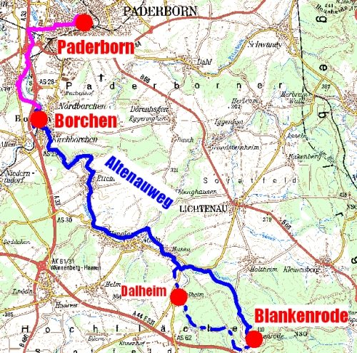 Blankenrode - Husener Stausee (bzw. Dalheim) - Husen - Atteln - Henglarn - Etteln - Kirchborchen - Nordborchen