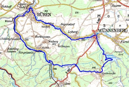 Bad Wünnenberg - Aabachtalsperre - Bleiwäsche - Ringelstein - Siddinghausen - Weine - Büren - Keddinghauser See - Bad Wünnenberg