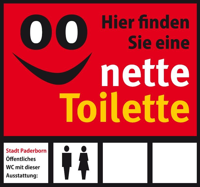 Paderborn nimmt an der Aktion "Nette Toilette" teil. In der PaderHalle gibt es für Besuchergruppen eine beaufsichtigte Toilettenanlage, sogar mit Paderborn-Informationsmaterial. Ausserdem stehen in der Stadt verschiedene öffentliche Toilettenanlagen zur Verfügung.