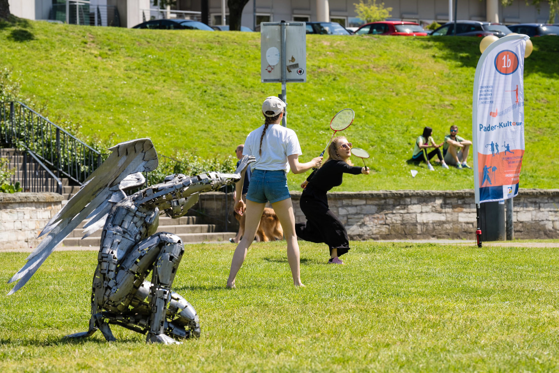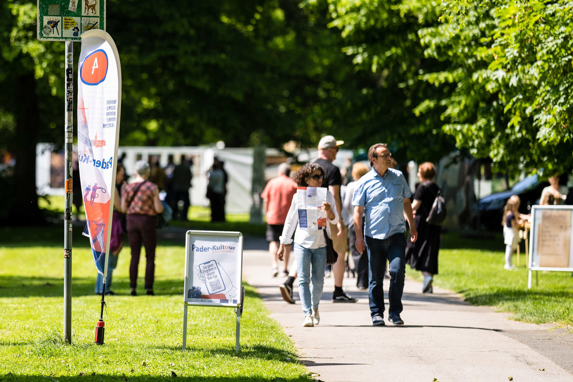 Der Pfingstspaziergang mit kulturellen Höhepunkten hat in Paderborn Tradition. Bereits zum 12. Mal findet die Pader-Kultour 2024 statt. Zwischen 14:00 und 19:00 Uhr bieten über 30 Künstler*innen an 19 Standorten im Grünen entlang der Pader ein buntes Programm mit Straßentheater, Musik, Poesie, Ausstellung und vieles mehr.