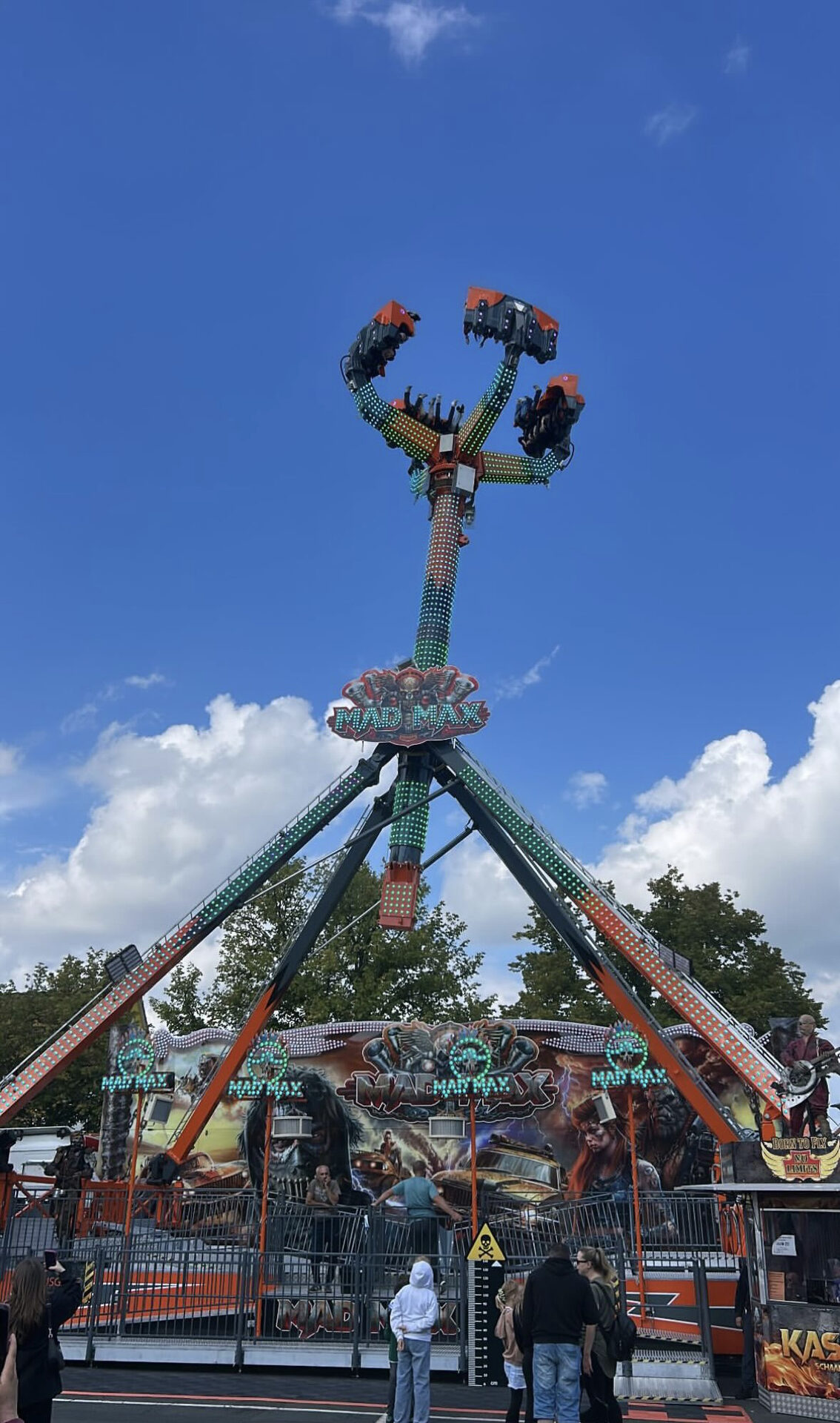 Die 16 m hohe Schaukel von Schausteller Schaak, entführt mit 360° Gondel die Fahrgäste durch aufregende Stürme sowohl kopfüber als auch sanft schaukelnd in die Post-Apokalypse des beliebten Kino-Blockbusters. Ein unvergessliches Abenteuer für die ganze Familie, bei dem jeder den Adrenalinschub genießen kann. Durch die handgemalte Frontgestaltung, die spannenden Effekte und ein echtes Motorrad aus „Mad Max“ ist das Geschäft zudem ein echter Blickfang.