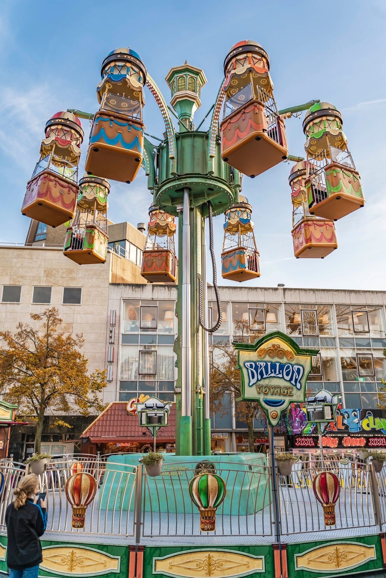 Schausteller Markmann bietet erstmalig in Paderborn eine Ballon – Rundfahrt mit Twist in liebevoll gestalteten Heißluftballons und 360° drehenden Fahrgastkörben für die ganze Familie.